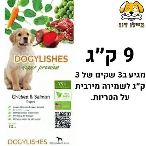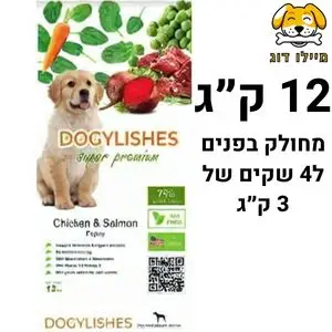 דוגילישס מזון סופר פרימיום גורים עוף וסלמון 12 ק"ג
